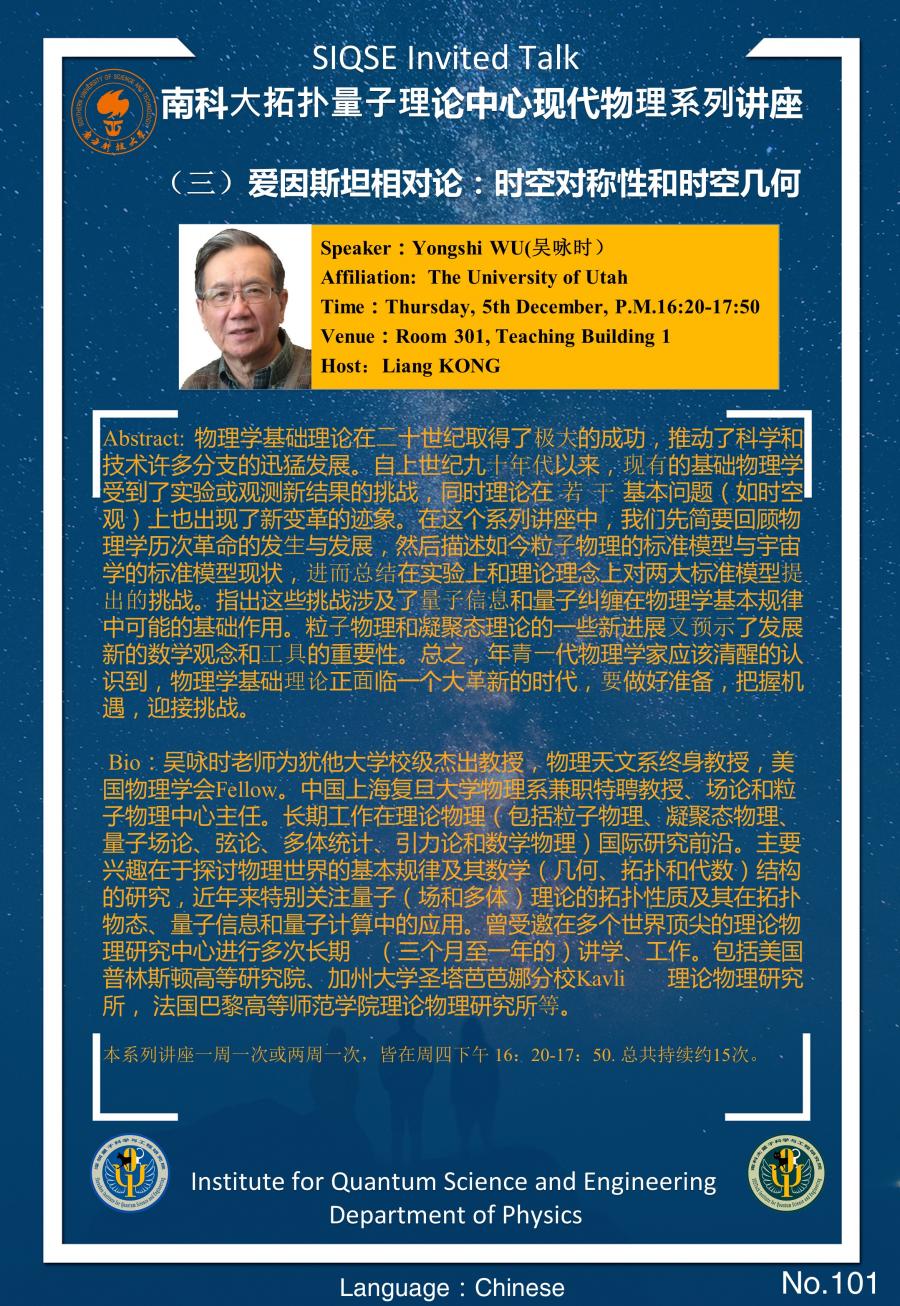 南科⼤拓扑量子理论中心现代物理系列讲座 (三)爱因斯坦相对论:时空对称性和时空几何