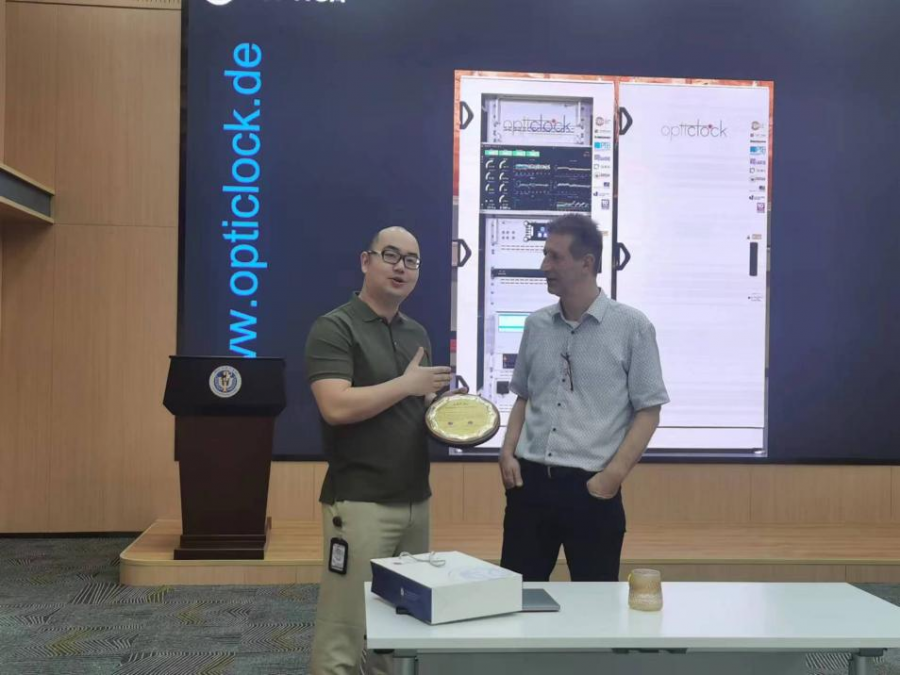 在自由提问中,在场的老师与学生们围绕激光系统紧凑化可移动性等相关技术细节,以及产品开发合作等问题进行了更加深入的讨论。最后,刘骏秋老师代表量子院向Juergen Stuhler博士赠送纪念品并合影留念,并希望TOPTICA为量子院科研发展提供有力支持。