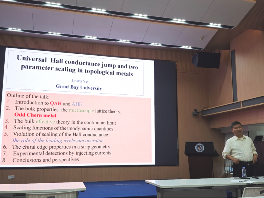 12月2日下午,研究院党委在518报告厅成功举办了第82期卓粤量子沙龙活动。本次活动邀请了大湾区大学叶锦武讲席教授为研究院师生带来题为“Universal Hall conductance jump and two parameter scaling in topological metals”的精彩报告。