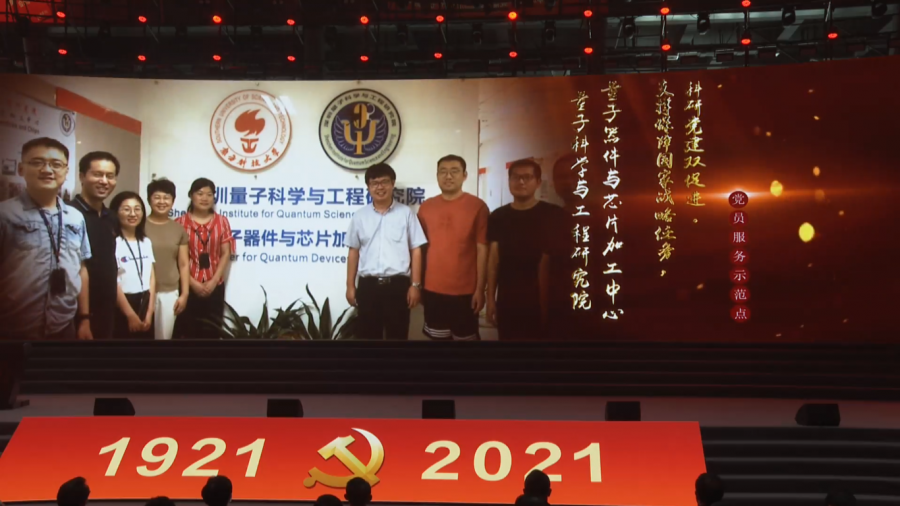 2021年6月23日,我校举行庆祝中国共产党成立100周年暨“七一”表彰大会。量子科学与工程研究院党总支荣获校级“十佳先进基层党组织”,量子器件与芯片加工中心荣获“党员服务示范点”。量子研究院党总支书记刘松代表量子院参加表彰大会并领奖。