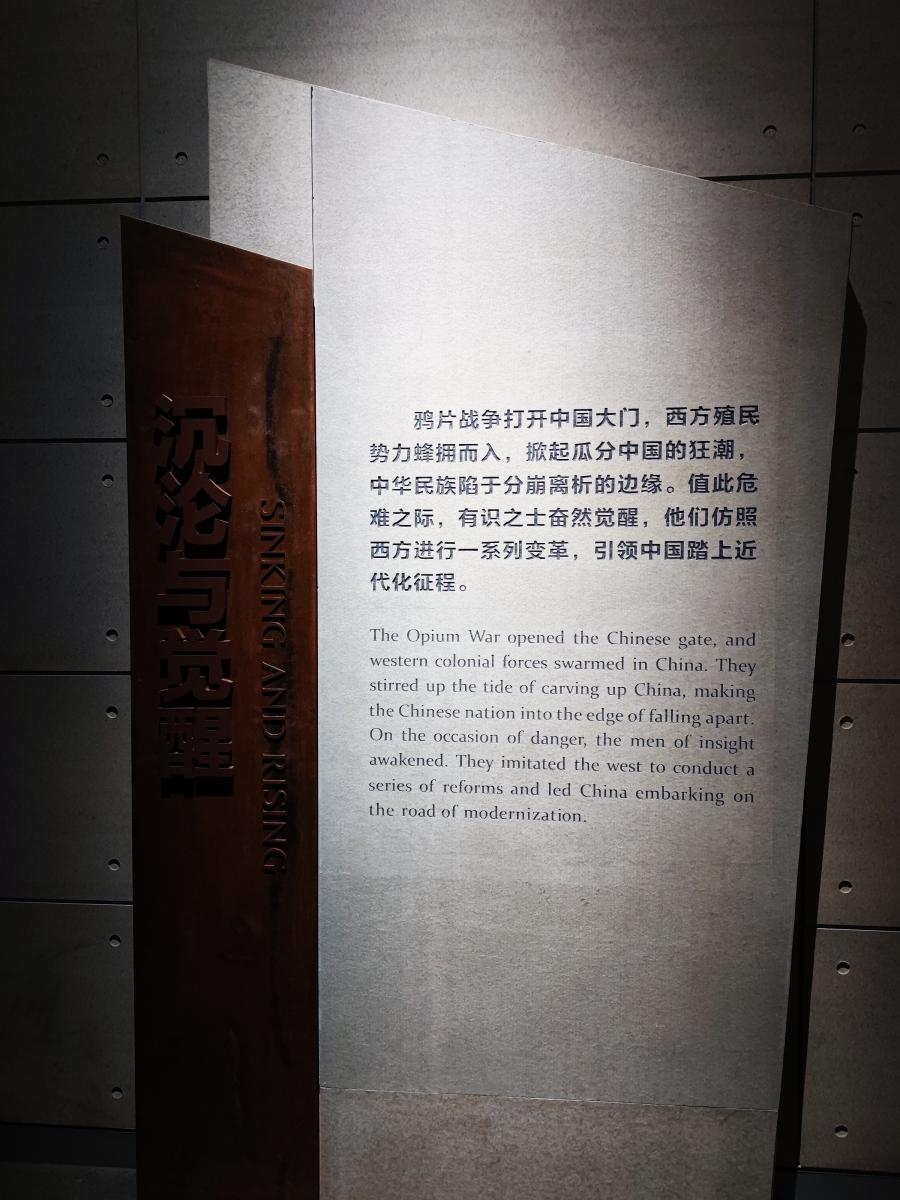 “鸦片战争打开中国大门,西方殖民势力蜂拥而入,掀起瓜分中国的狂潮,中华民族陷于分崩离析的边缘。值此危难之际,有识之士奋然觉醒,他们仿照西方进行一系列变革,引领中国踏上近代化征程。”