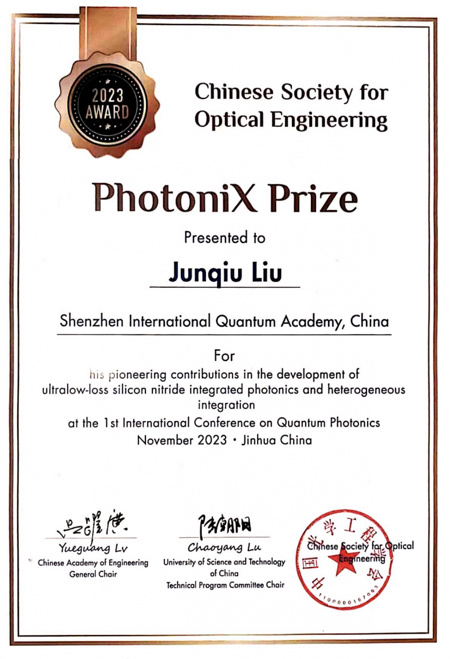 经过组委会和国际评审委员会严谨认真的筛选和评审,按照“前沿技术奖”和“技术突破奖”两类,最终评选出6名获奖者。量子研究院刘骏秋研究员获得“技术突破奖”,以表彰他在超低损耗氮化硅异质集成光学上的技术突破和前瞻应用
