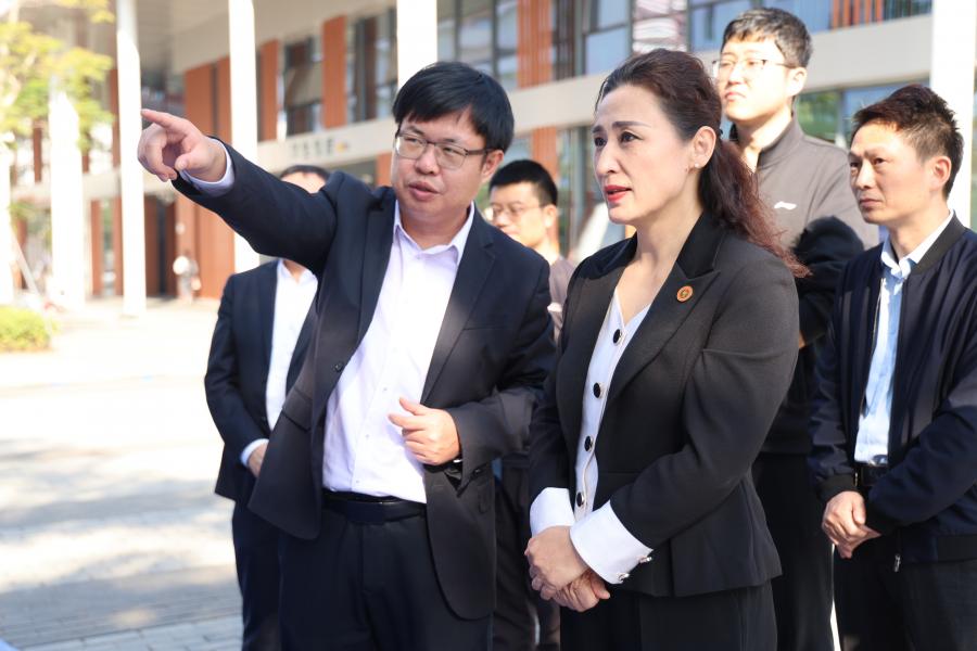 俞大鹏院士向姜虹书记一行详细介绍了量子研究院的发展历程及建院六年来在深圳市和学校支持下所取得的重大科研成果。核心科研设备自研是量子研究院的特色,俞院士提到,在面临国际设备禁运和技术封锁的险峻形式下,量子研究院勇闯科研“无人区”,注重核心设备自研攻关,以实际行动践行南方科技大学新型研究型大学的精神内核。
