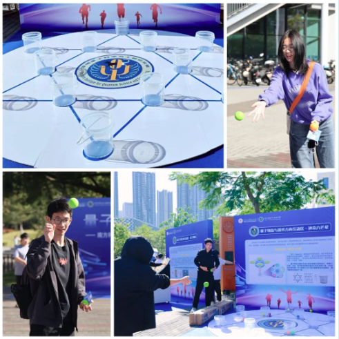 依托量子研究院四大研究方向,量子研究院在大榕树广场设置了量子发展史-扭蛋机、量子物态与器件-神奇六芒星、量子计算-量子迷城、量子极限传感-量子精密飞镖以及量子工程应用-突破卡脖子封锁5个互动摊位,通过参与互动游戏,集齐通关贴纸即可开启“薛定谔的盲盒”。通过游戏演绎,将量子物理学知识变得通俗易懂,让参与者“玩转”量子世界,从而领略量子科研的魅力。活动吸引了千余名师生的参与。