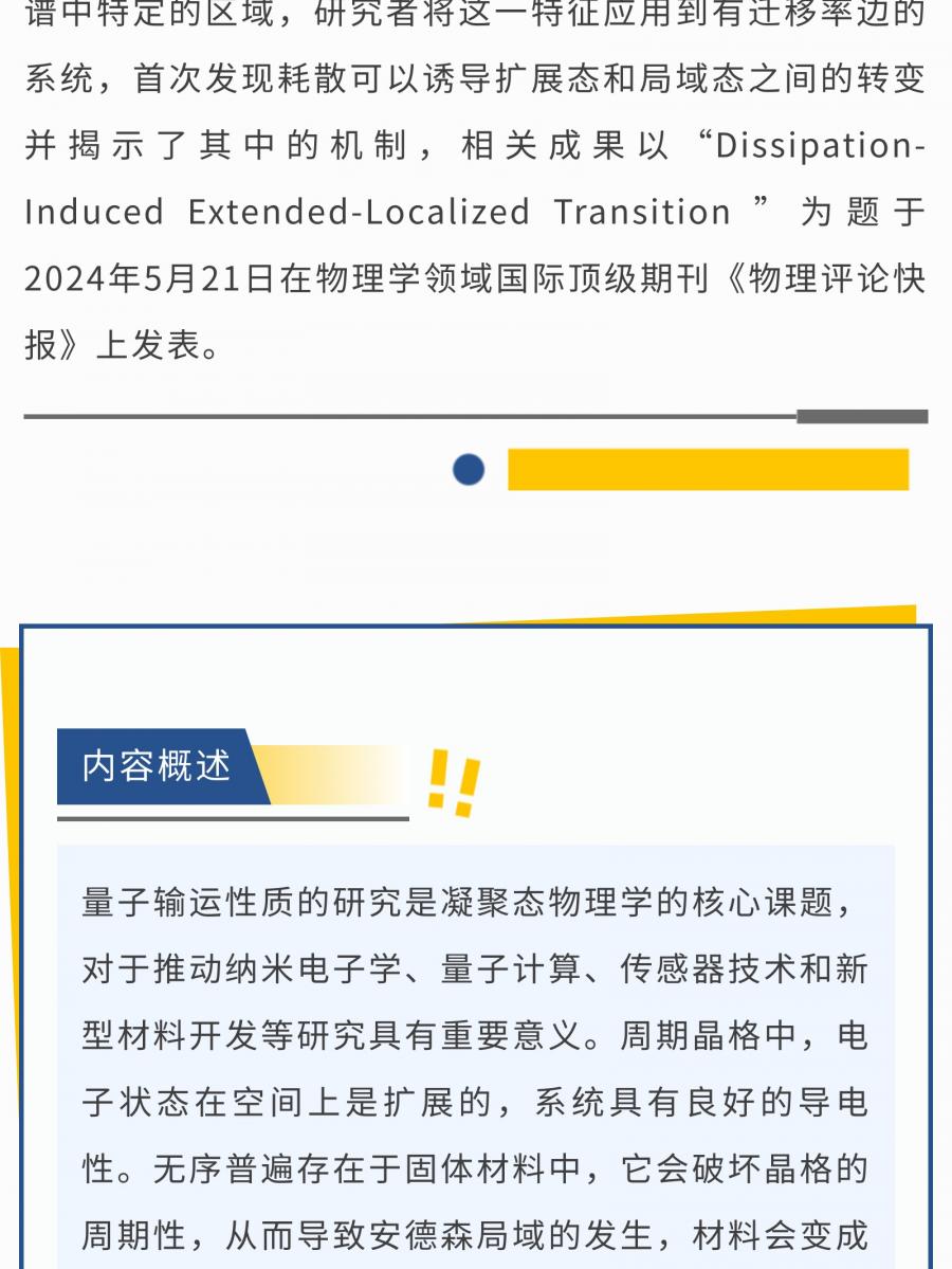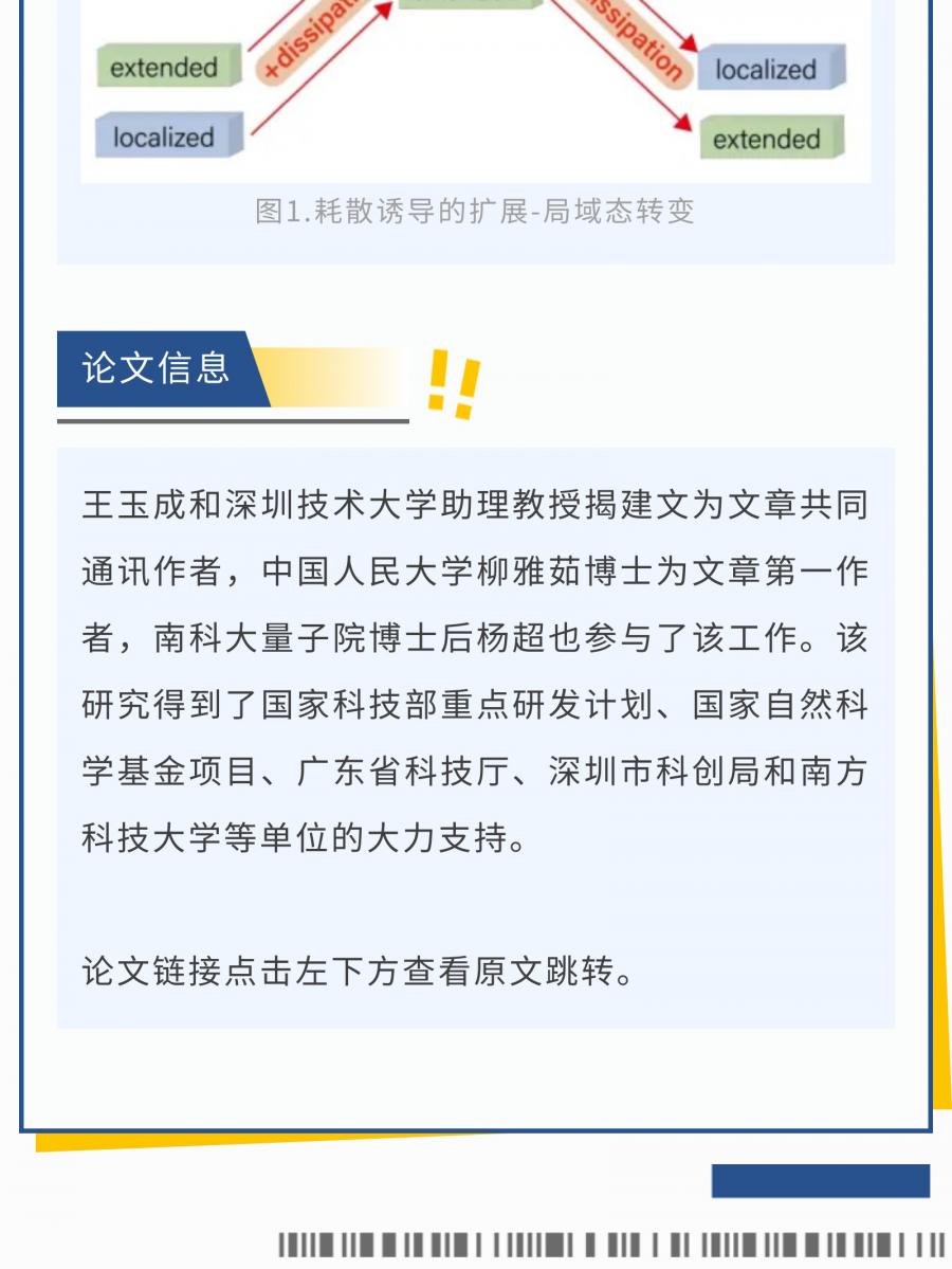 王玉成研究员与合作者在耗散诱导的扩展-局域态转变方面取得重要研究进展