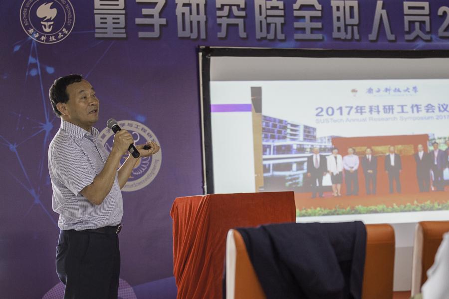 2018年11月11日,量子科学与工程研究院在南方科技大学台州楼召开研究院全职人员2018工作会议。深圳/南科大量子科学与工程研究院院长俞大鹏,副院长夏钶,以及包括研究员,研究教授,兼职教授,工程师,行政团队,博士后,在内的80余名人员参会。会议由深圳/南科大量子科学与工程研究院副院长夏钶主持。