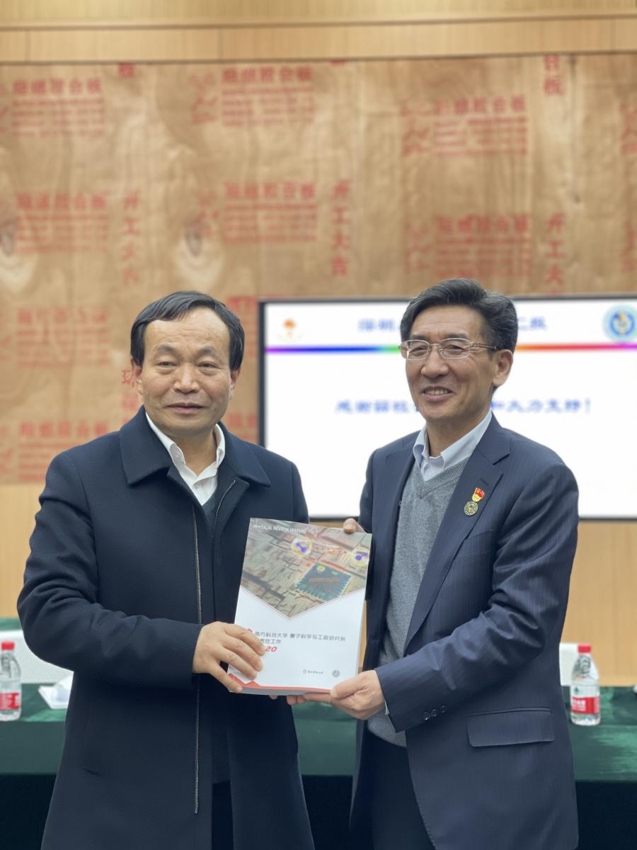 俞大鹏院士将研究院2020年代表性工作成果合集和量子猫纪念盘赠与给薛其坤校长留念