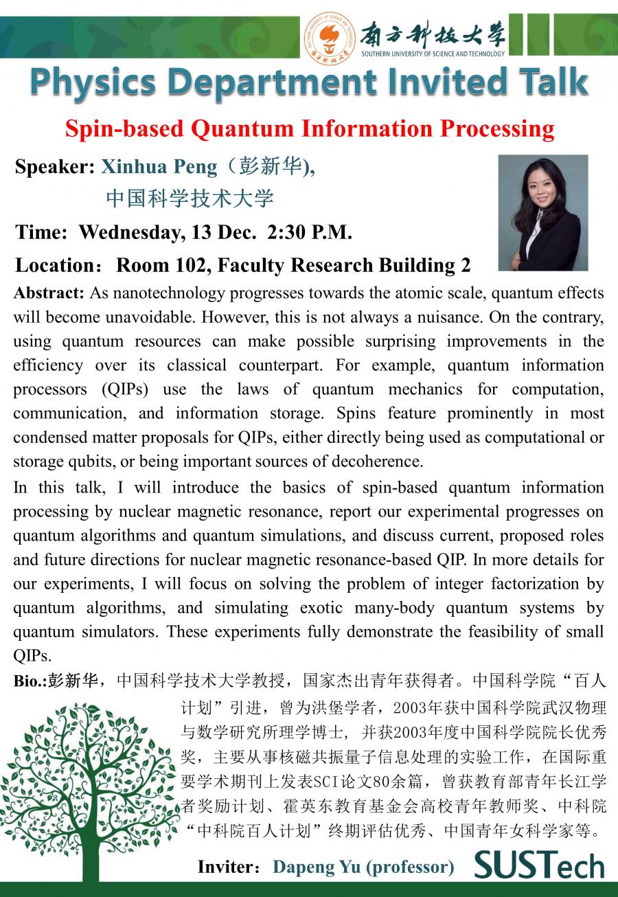 彭新华 第二科研楼102报告厅 2:30 P.M.
