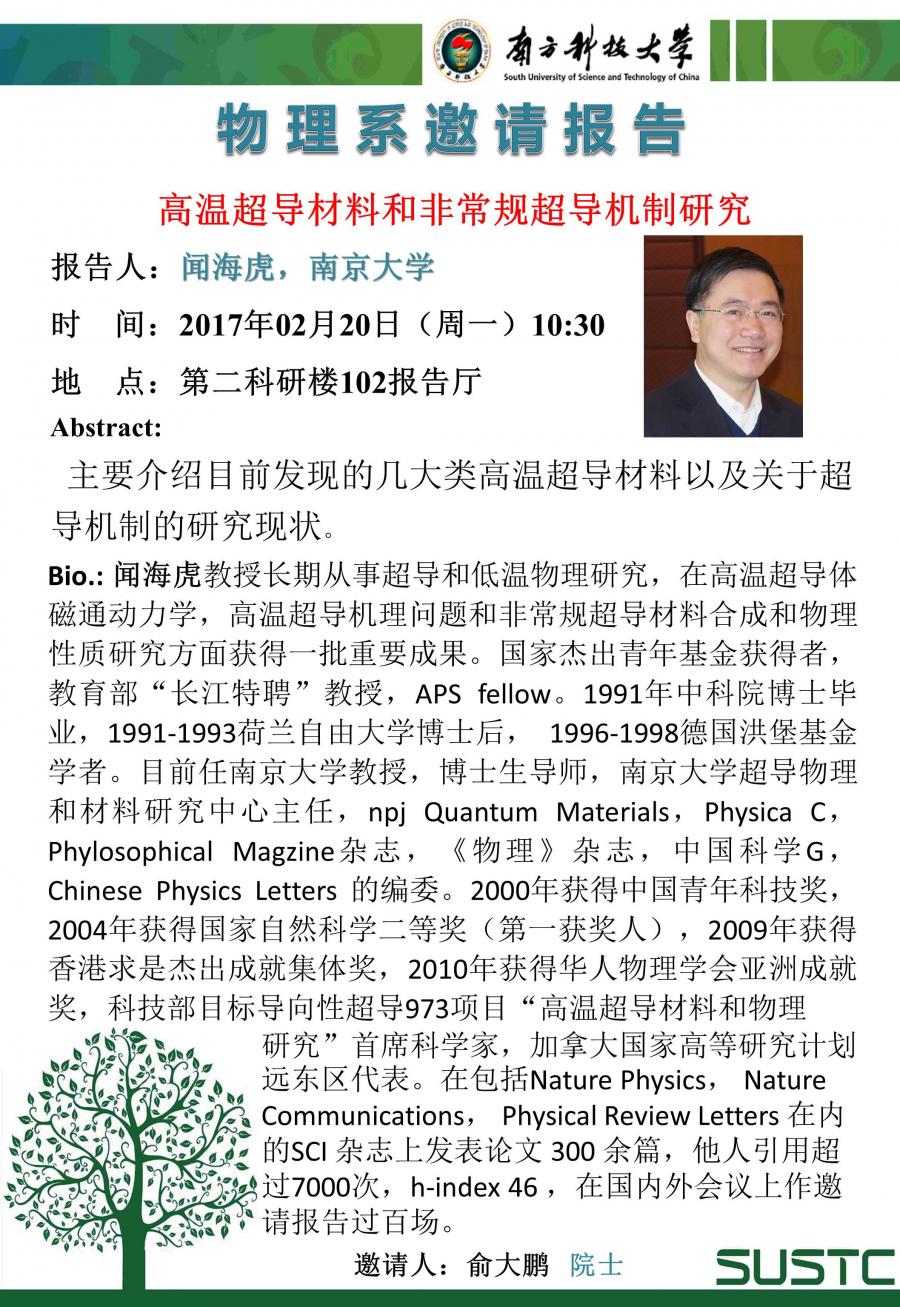 闻海虎 第二科研楼102报告厅 10:30 A.M.